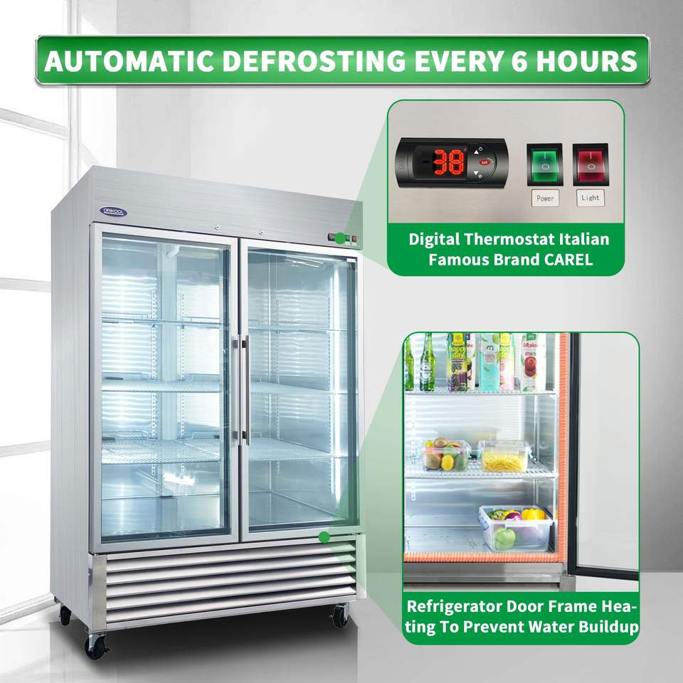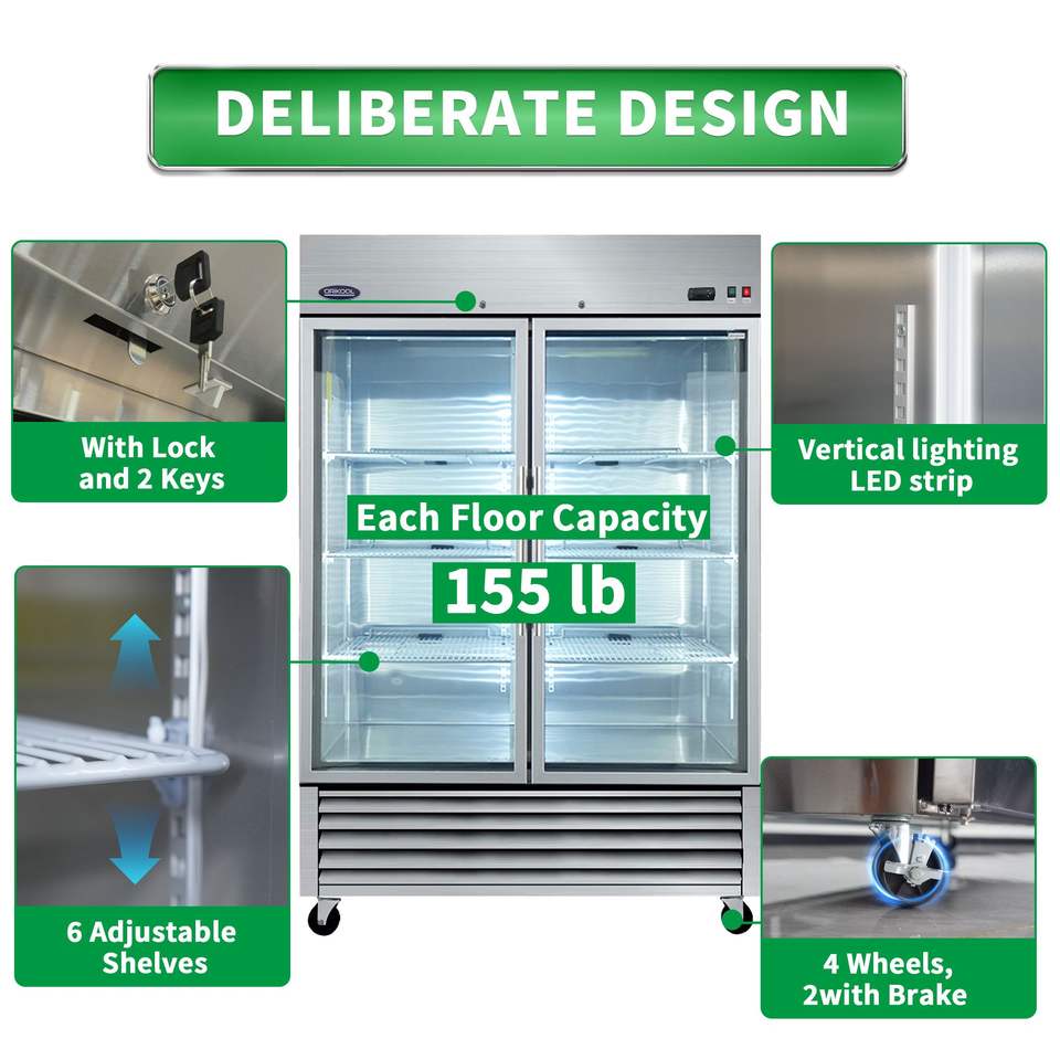 ตู้แช่แสดงสินค้าเชิงพาณิชย์ ORIKOOL ขนาด 54 นิ้ว ประตูกระจกบานสวิง ความจุ 49 คิว สแตนเลสสตีล ตู้แช่แข็งและตู้เย็น