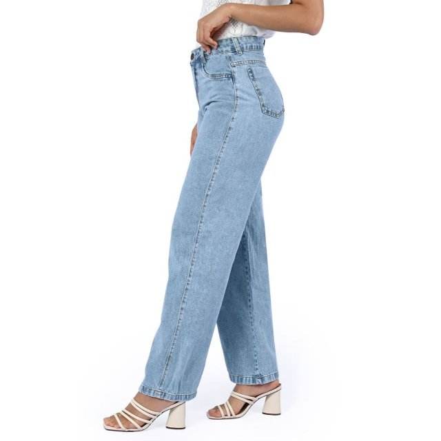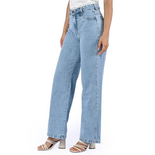 ข้อมูลจำเพาะ:Fit Type: Wide Leg / Loose Fit, Waist Type: High Waist, Fabric: Stretch Denim (Cotton + Stretch Denim), Length: Full Length (Approx. 40 inches), Closure Type: Zipper Fly with Metal Button, Pattern Type: Solid / Plain, Pocket Type: 5-Pocket Classic Design, Stitching: Double-Needle Durable Stitch, Details: Clean Look / Minimalist Finish / Premium Thread Work, Fabric Features: Soft Stretch/ Eco-Friendly/ Durable/ Breathable, Wash Type: Enzyme Wash / Soft Finish, Usage: Casual Wear/ Street Style/ Daily Comfort