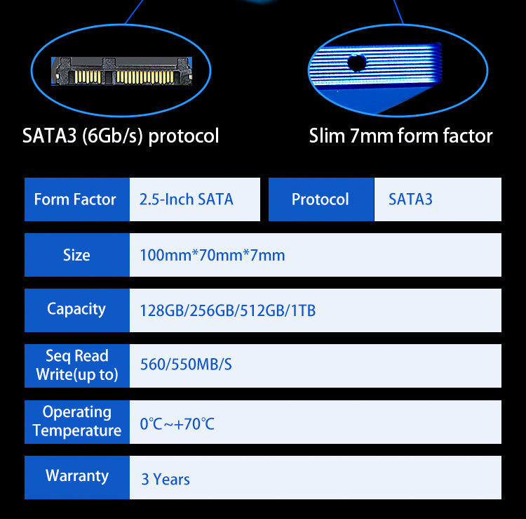 Oscoo 2.5นิ้ว SATA3 SSD 128 256 512 1 TB 2T Disque Dur interne TLC MLC NAND Flash 1 TB โซลิดสเตทไดรฟ์
