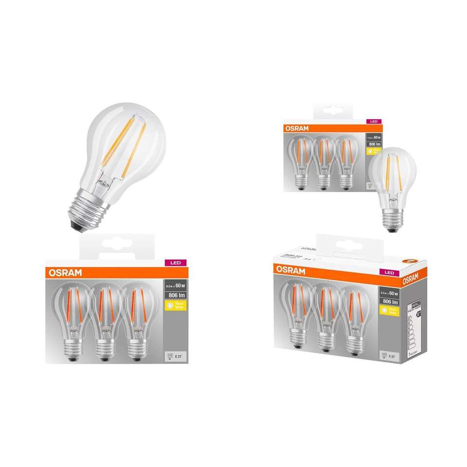 หลอดไฟ LED OSRAM E27 6.5W สีขาวอบอุ่นหลอดไส้ไฟในร่ม