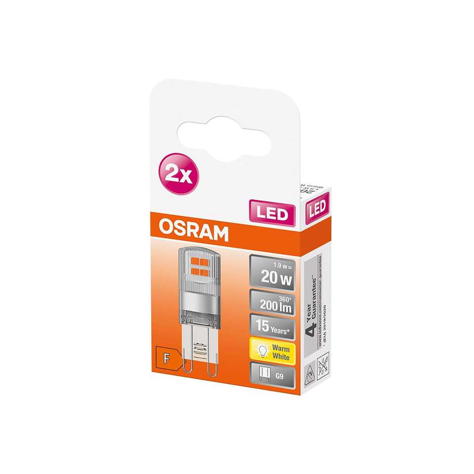 OSRAM LED pin 1,9W G9 200lm 2.700K clear box of 2
