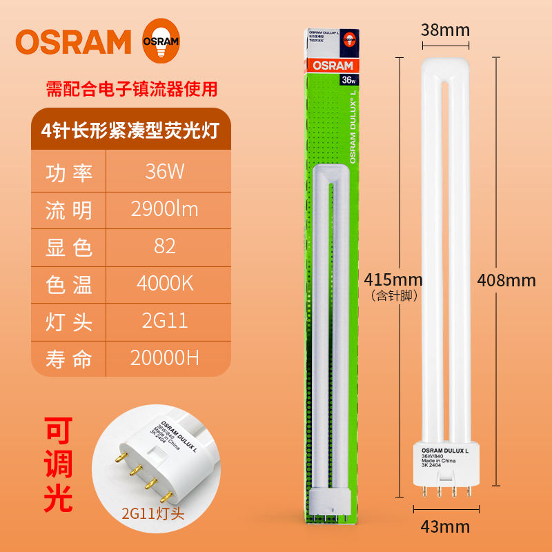 หลอดฟลูออเรสเซนต์ OSRAM DULUX L 36W 4Pin 865 840 2G11 2900LM CRI 80