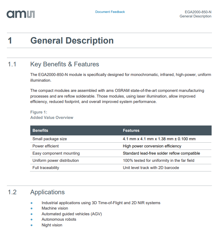 ไดโอดเลเซอร์ OSRAM รุ่น EGA2000-850-N ความยาวคลื่น 850 นาโนเมตร กำลังไฟ 4.82 วัตต์ แรงดันไฟฟ้า 1.9 โวลต์ ~ 2.6 โวลต์ ชิป LED สำหรับไฟส่องสว่างแบบกระจายกำลังสูงสำหรับอุตสาหกรรม ปรับความสว่างได้ 120