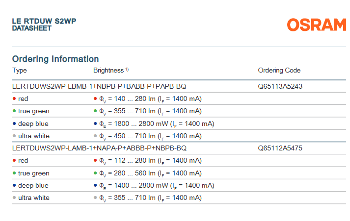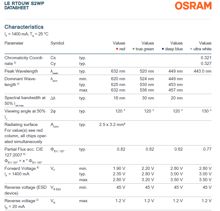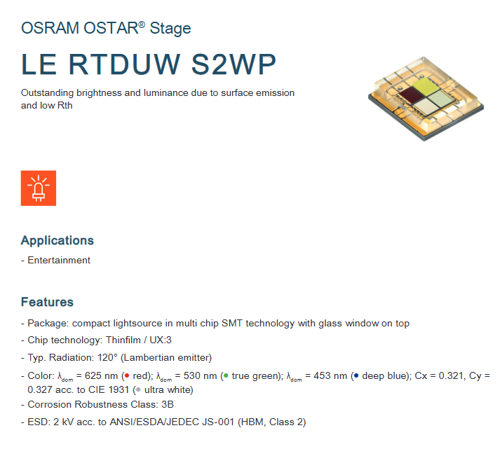 OSRAMs LE RTDUW S2WP OSTAR Stage High Power Multi Color LED Chip RGBW White 120 Deg 3-Year Warranty Dimmable