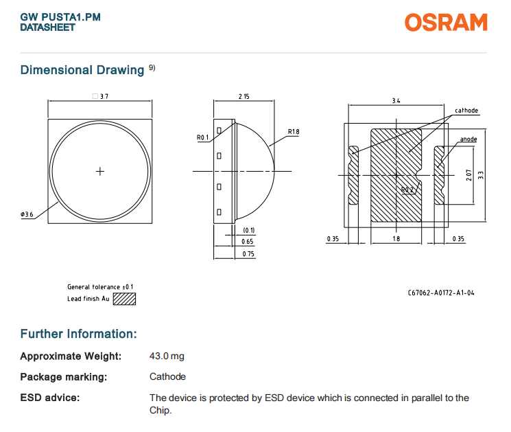 ขนาด (มม.):3.7มม. X 3.7มม.