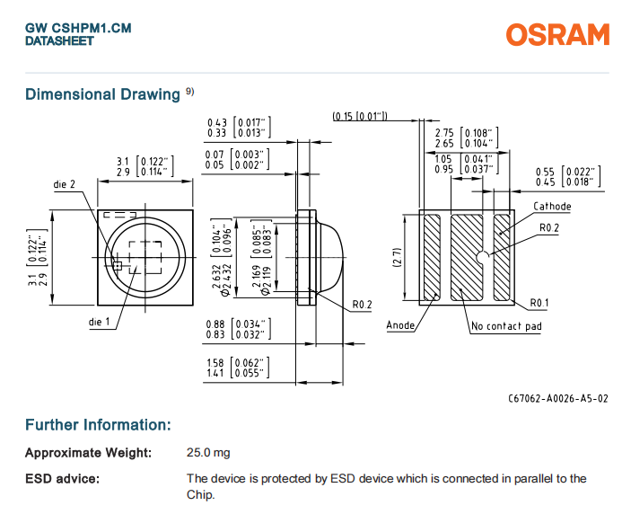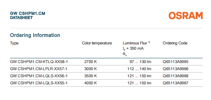 Osrams osslon SSL 150 GW CSHPM1.CM-KTLQ-XX58-1 2700K 3000K 3500K 4000K ไฟ LED สีขาวอบอุ่นธรรมชาติ1W