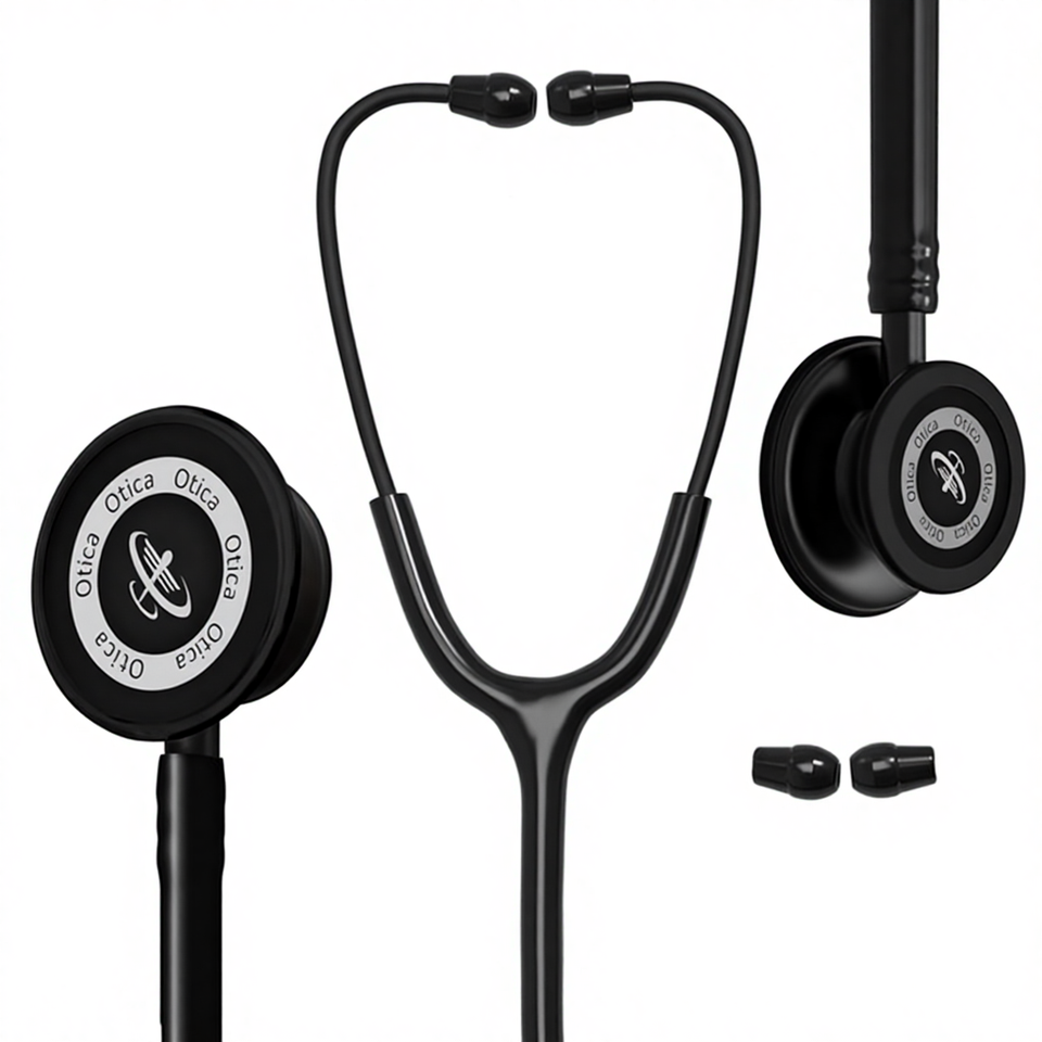 เครื่องฟังเสียงหัวใจแบบแมนนวล OTICA All Black รุ่นหัวคู่ ระดับ Class II สำหรับแพทย์และนักศึกษาแพทย์ | ชิ้นส่วนหน้าอกอะลูมิเนียม เสียงคมชัด รับประกัน 1 ปี