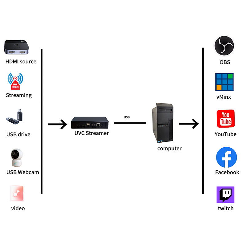 OTV-LC10 UVC streamer SRT HLS RTMP การ์ดถ่ายทอดสดการสตรีมมิ่ง vmix YouTube Facebook Facebook twitch Media Player