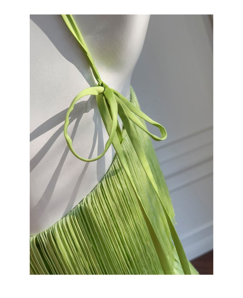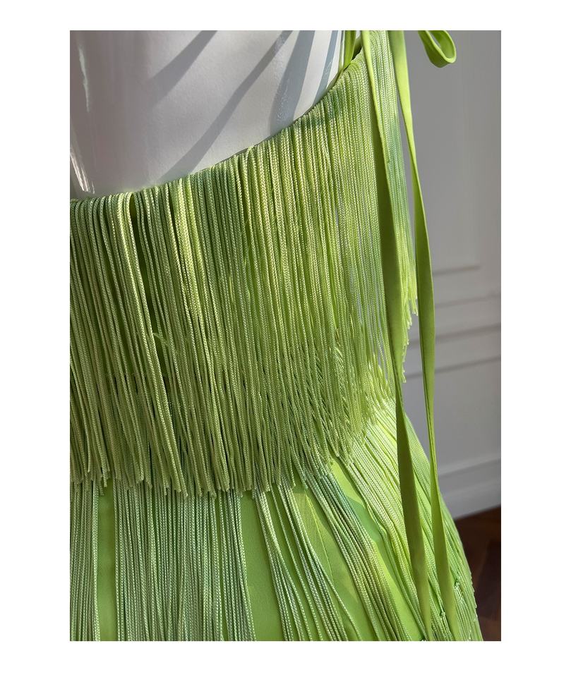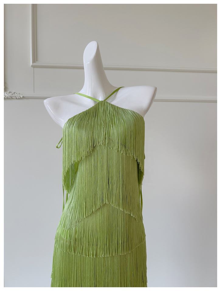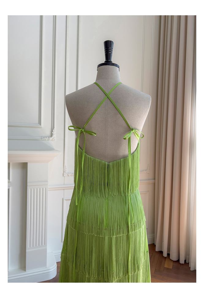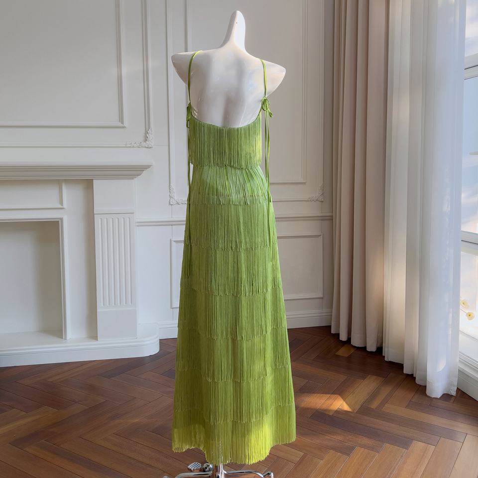 Oudina ชุดเดรสยาวเปิดหลังแต่งพู่แขนกุดชุดเดรสออกงานเลี้ยงอาหารค่ำหรูหราทันสมัย