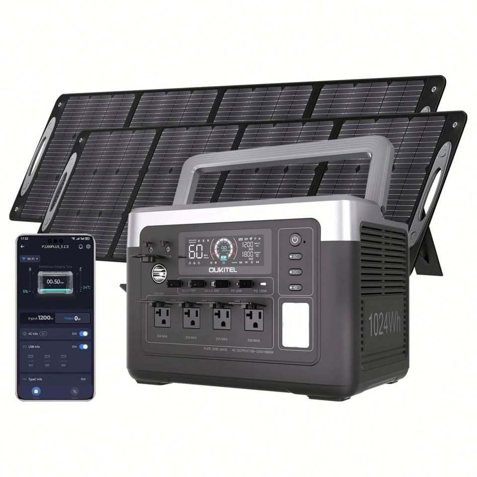 Oukitel P1000แบบพกพา dron Power Station 1800W แบตเตอรี่1024Wh เครื่องกำเนิดไฟฟ้าพลังงานแสงอาทิตย์พร้อมชาร์จไร้สาย