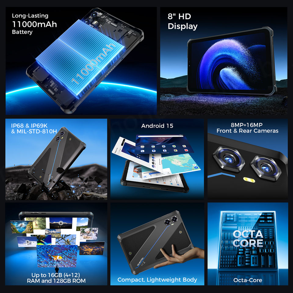 Oukitel แท็บเล็ตพีซีแอนดรอยด์15, 8นิ้ว4GB + 128GB 11000mAh แท็บเล็ตพีซีที่ทนทานกล้อง16MP หลักอุปกรณ์ RT3 PLUS