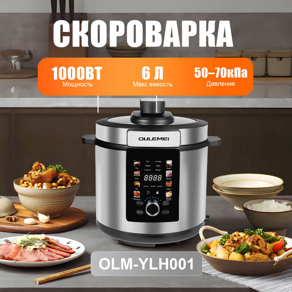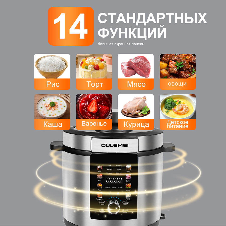 เครื่องใช้ไฟฟ้าในบ้าน OULEMEI หม้อหุงข้าวไฟฟ้าอเนกประสงค์ 7 ลิตร หม้อหุงข้าวไฟฟ้าแบบแรงดันสูง สีเงิน