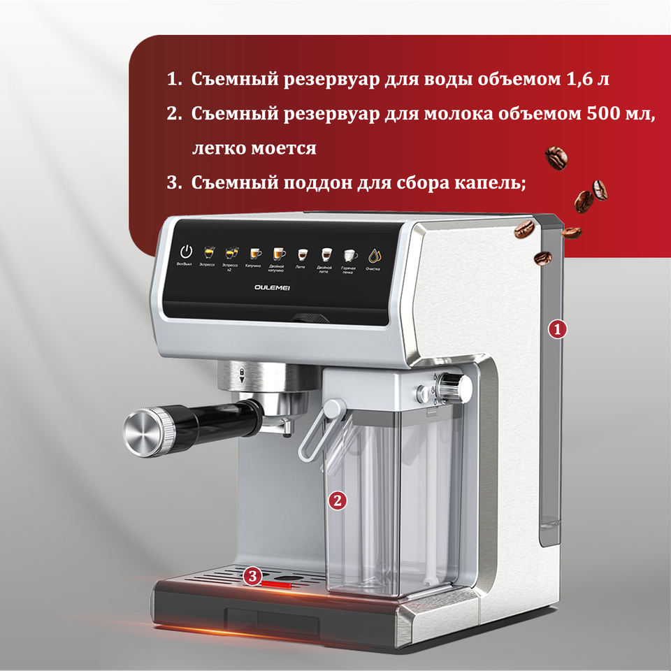Oulemei เครื่องชงกาแฟเอสเพรสโซสแตนเลส, เครื่องทำกาแฟลาเต้คาปูชิโน่