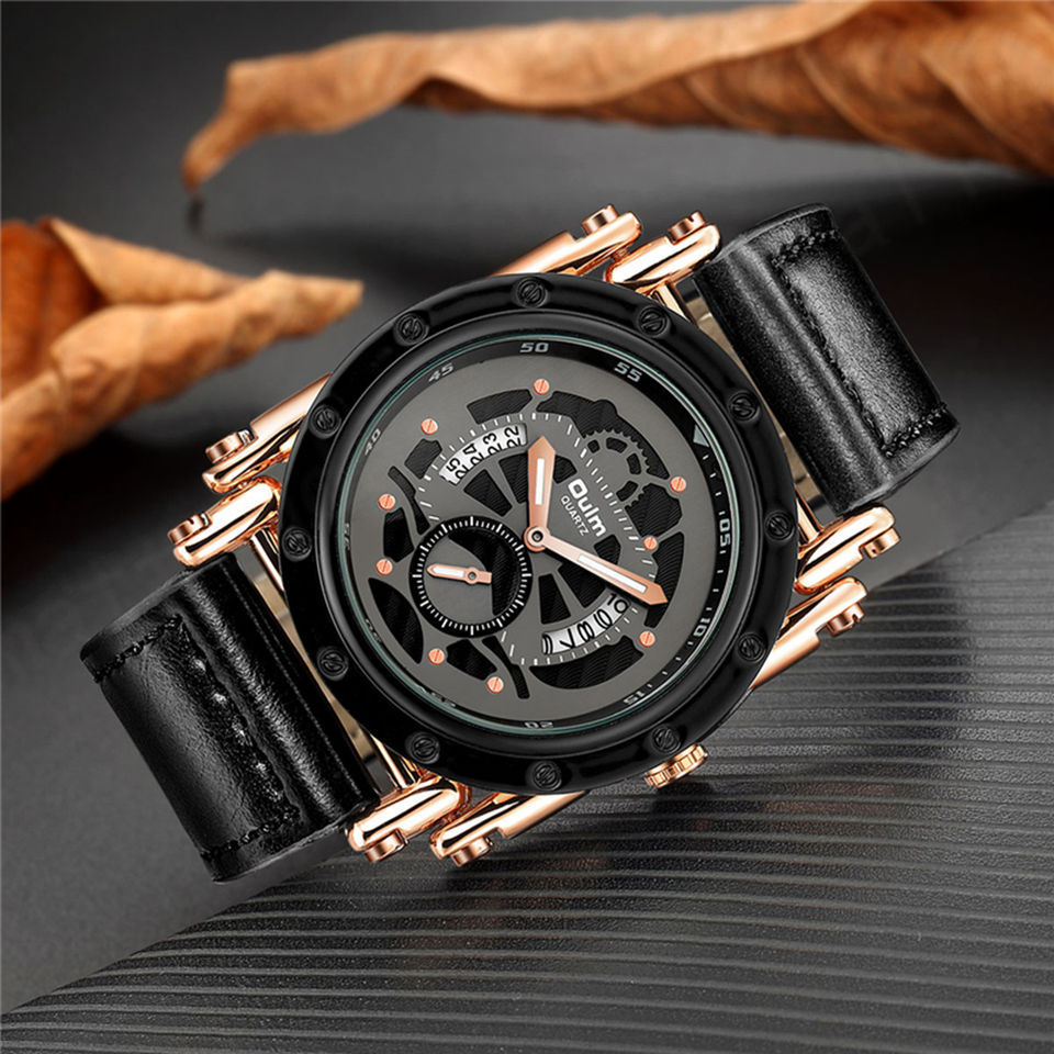 นาฬิกาควอตซ์ปฏิทิน3399ของผู้ชายสายหนังพร้อมนาฬิกาจับเวลา