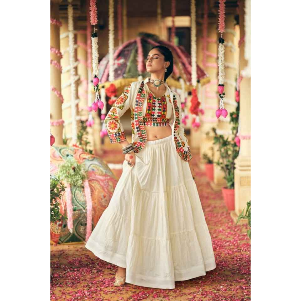 ชุดเสื้อ lehenga และชุด Koti ที่ทันสมัยสุดพิเศษพร้อมการปักผ้าฝ้ายแท้สำหรับงานปาร์ตี้
