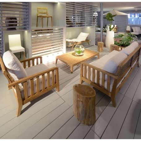เก้าอี้โซฟาแขนกลางแจ้งทำจากไม้สักทำในประเทศอินโดนีเซีย