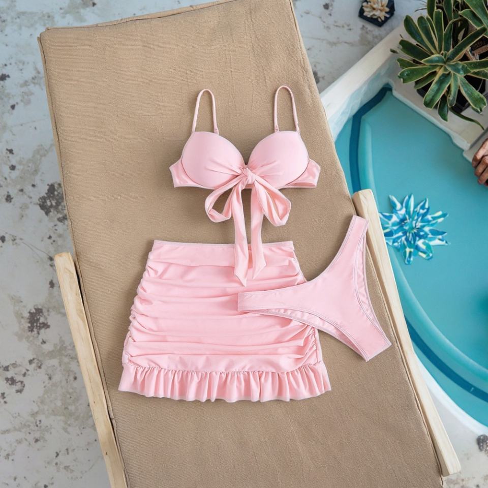 ชุดว่ายน้ำผู้หญิงไซส์ใหญ่ 3 ชิ้น ยี่ห้อ OUTPACE รุ่น Retro Plus Size ลายดอกไม้และลายสก็อต พร้อมบิกินี่แบบ V-String