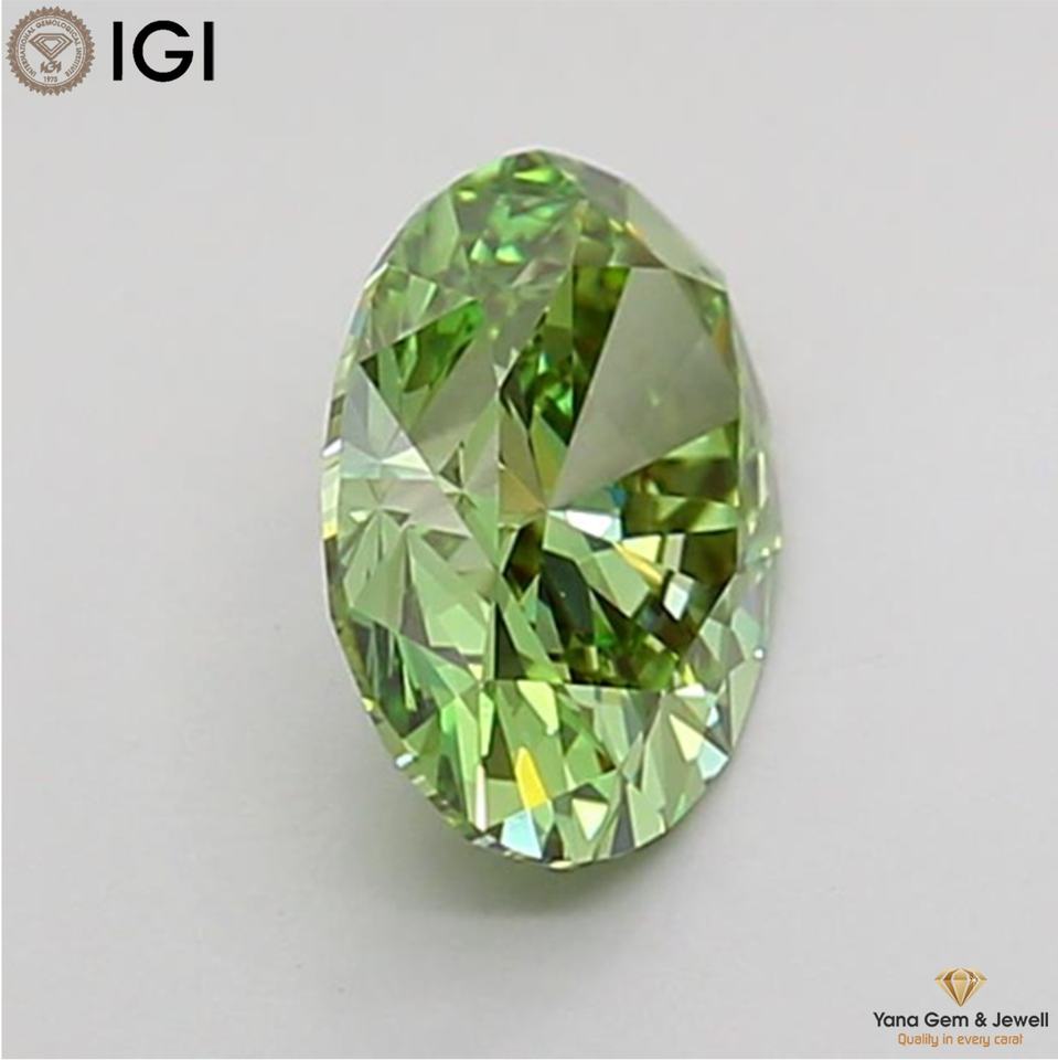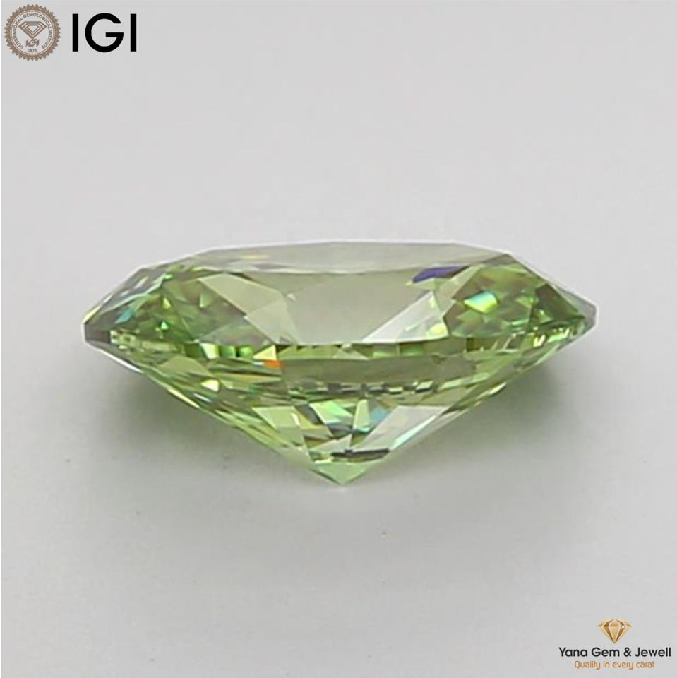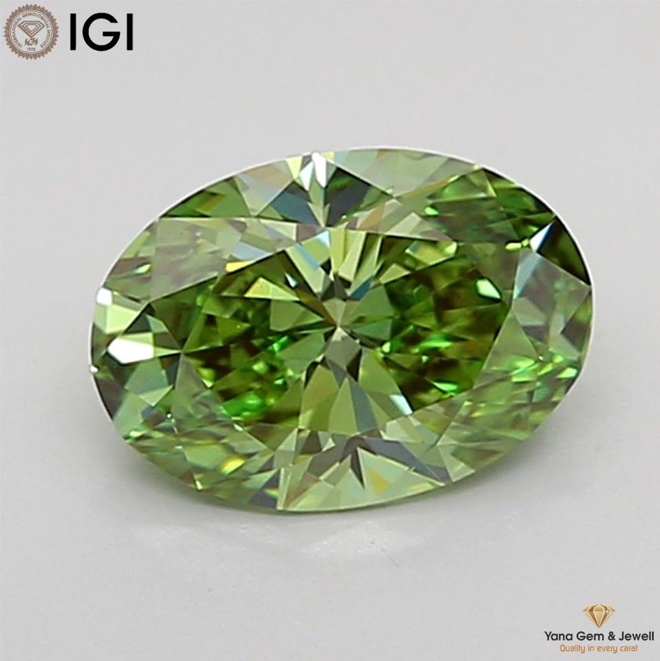 เพชรทรงรี CVD ผลิตในห้องปฏิบัติการ 1.00 กะรัต สีเขียวสดใส ระดับความสะอาด VVS2 พร้อมใบรับรอง IGI สำหรับแหวนเครื่องประดับสั่งทำ