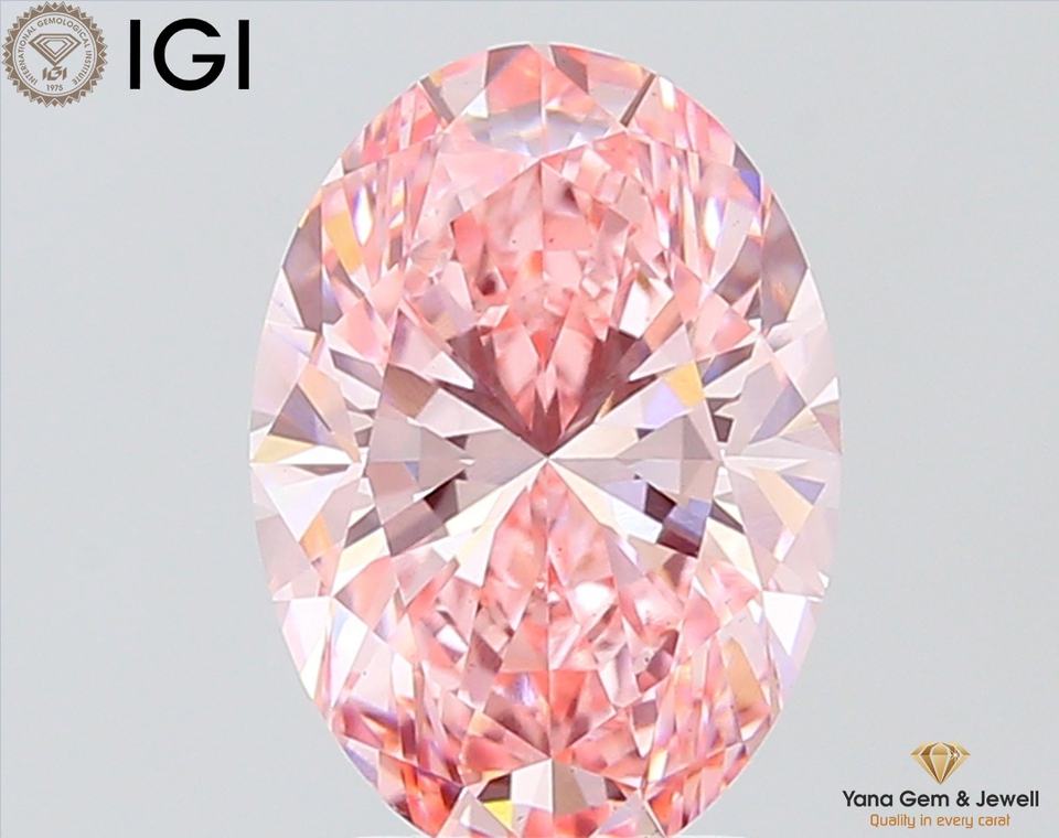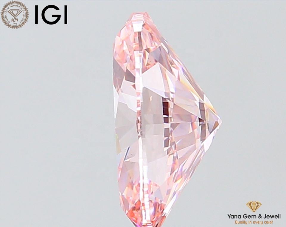 เพชรทรงรี CVD ผลิตในห้องปฏิบัติการ สีชมพูสดใส ระดับความสะอาด VS2 พร้อมใบรับรอง IGI น้ำหนัก 3.50 กะรัต เหมาะสำหรับติดตั้งเป็นเพชรเม็ดเดี่ยว