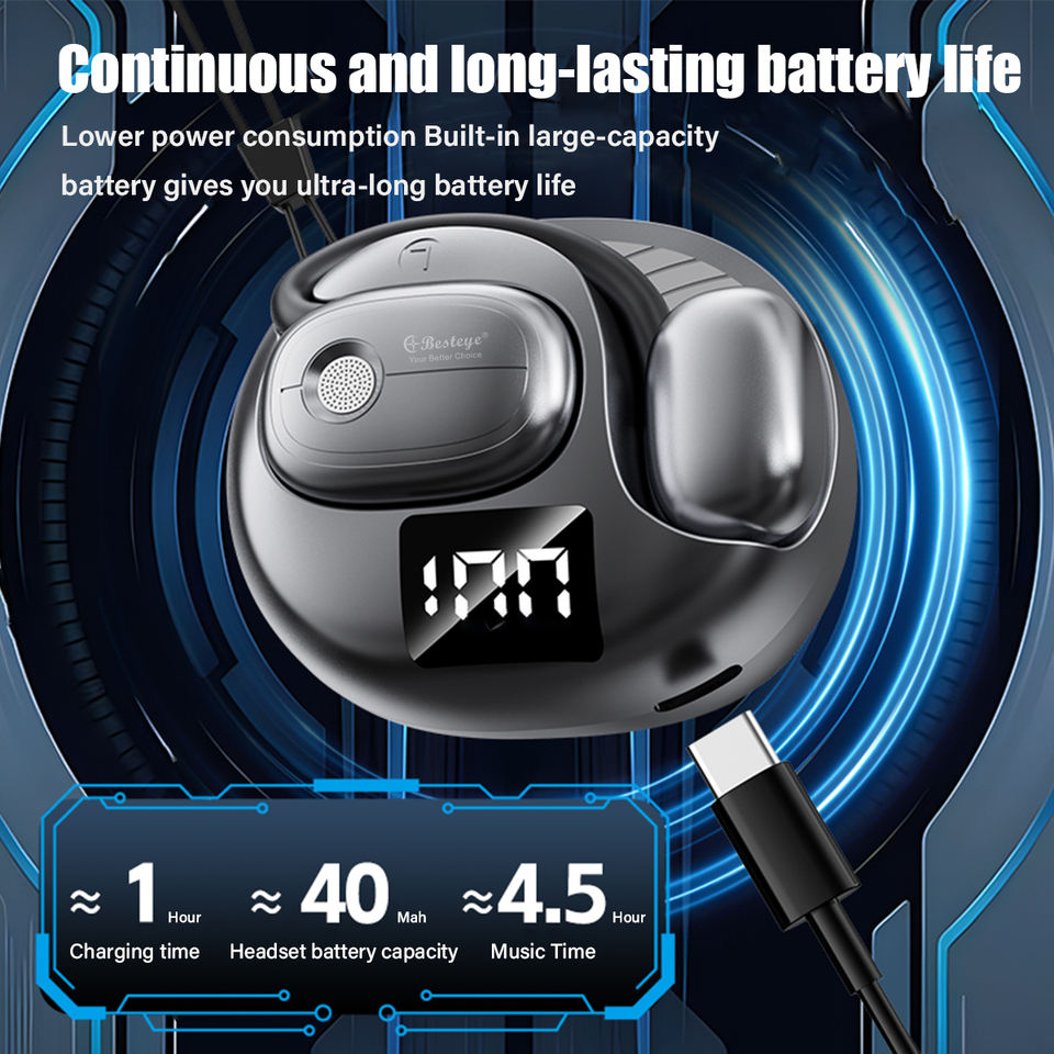 Ows หูฟังสเตอริโอ Hi-Fi หูฟังบลูทูธ, หูฟังไร้สายบลูทูธเวลาแฝงต่ำ BT 5.3หูฟังแบบเปิดโล่ง