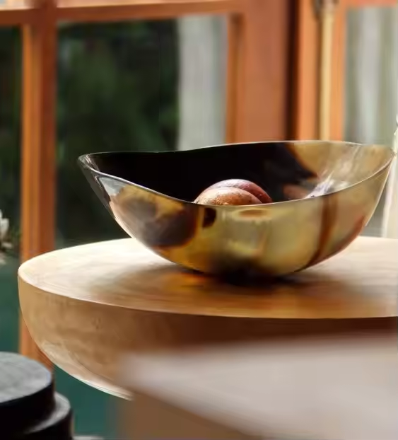 ถ้วยชามเขาควายขัดเงาเป็นมิตรต่อสิ่งแวดล้อมทำมือสำหรับสลัดเสิร์ฟโดยงานฝีมือรูปพระจันทร์เสี้ยว