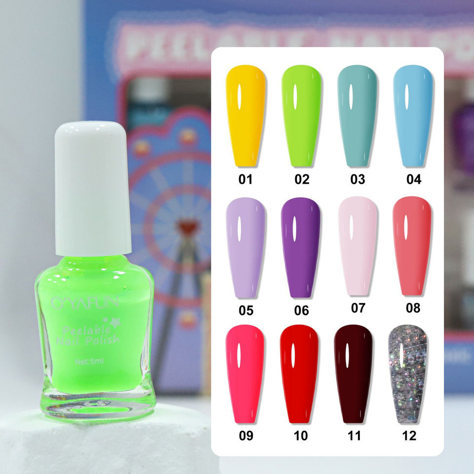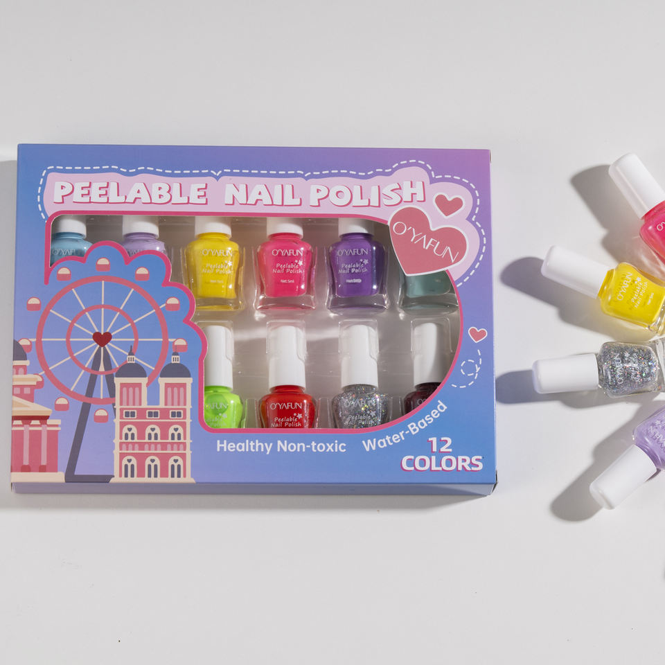 OYAFUN ยาทาเล็บ 12 สีของขวัญวันเกิดเด็กชุดแต่งหน้ายาทาเล็บสุขภาพดีปลอดสารพิษชุดยาทาเล็บสูตรน้ำ