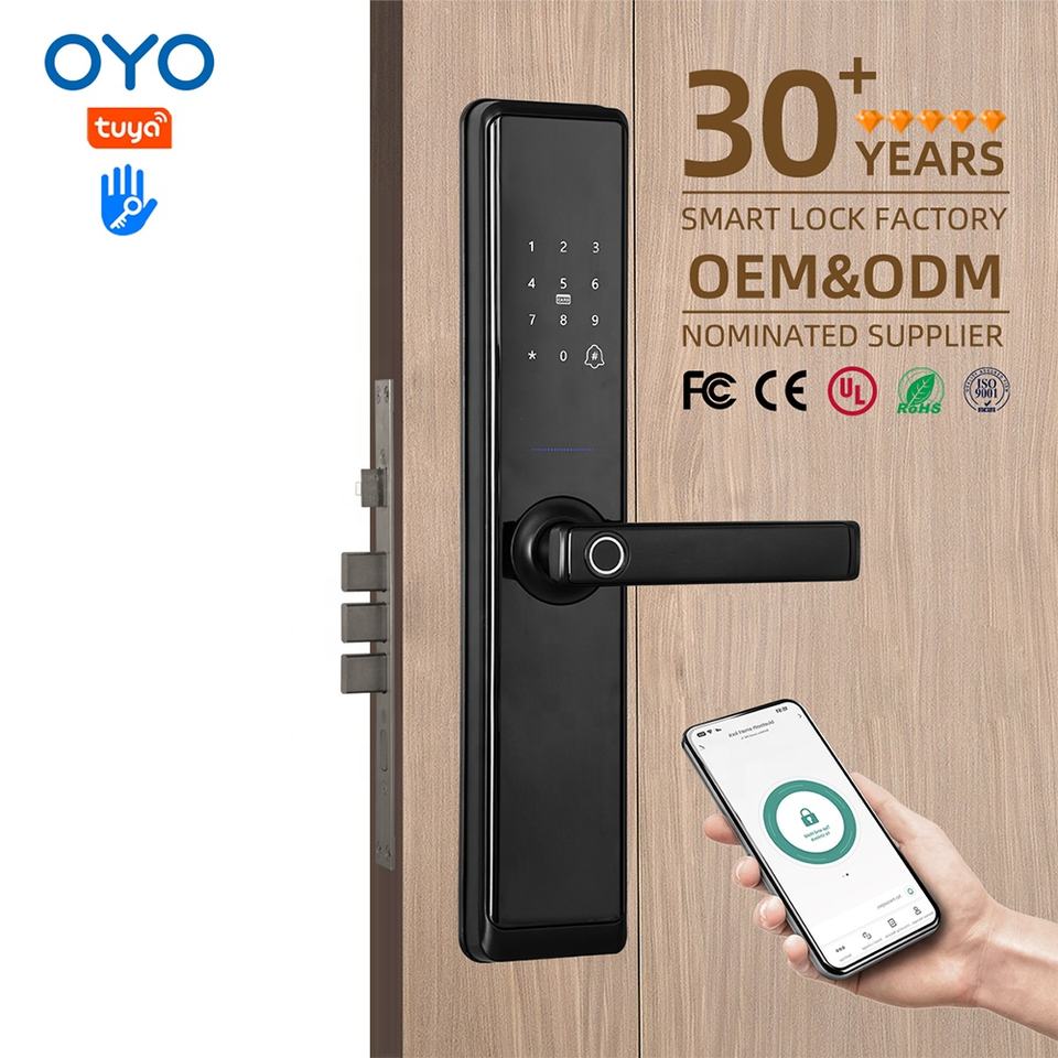 กุญแจล็อคประตูอัจฉริยะ OYO สำหรับห้องพัก อพาร์ทเม้นท์ แบบดิจิตอล ใช้ลายนิ้วมือ ควบคุมผ่านแอป Tuya TTLock เชื่อมต่อ WiFi