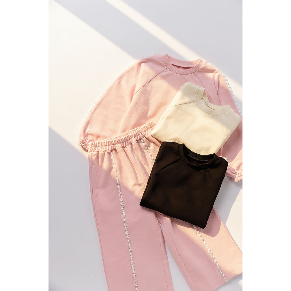 ชุดเสื้อผ้าเด็กเกาหลี OZKIZ ชุดเสื้อแขนยาวระบายอากาศดี แต่งลูกไม้สวยงาม กางเกงลายเรียบ สำหรับเด็กผู้หญิงอายุ 2-6 ปี ขายส่ง ฤดูใบไม้ผลิ/ฤดูใบไม้ร่วง