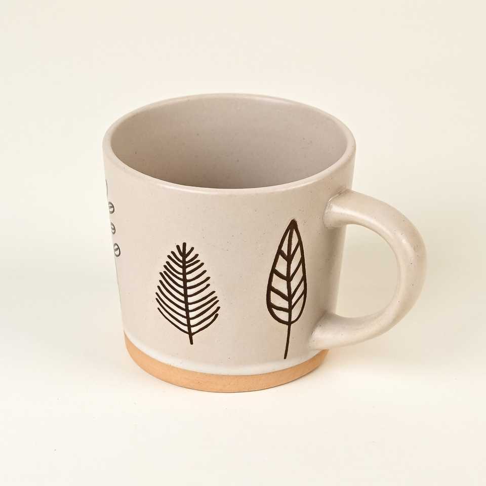 แก้วกาแฟเซรามิกเพ้นท์ลายมือแบบมินิมอลลายโอ๊คและเอล์ม ชุด 2 ใบ ความจุ 200 มล. ปลอดภัยสำหรับเครื่องล้างจาน