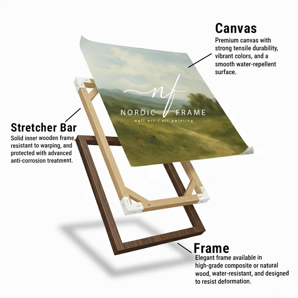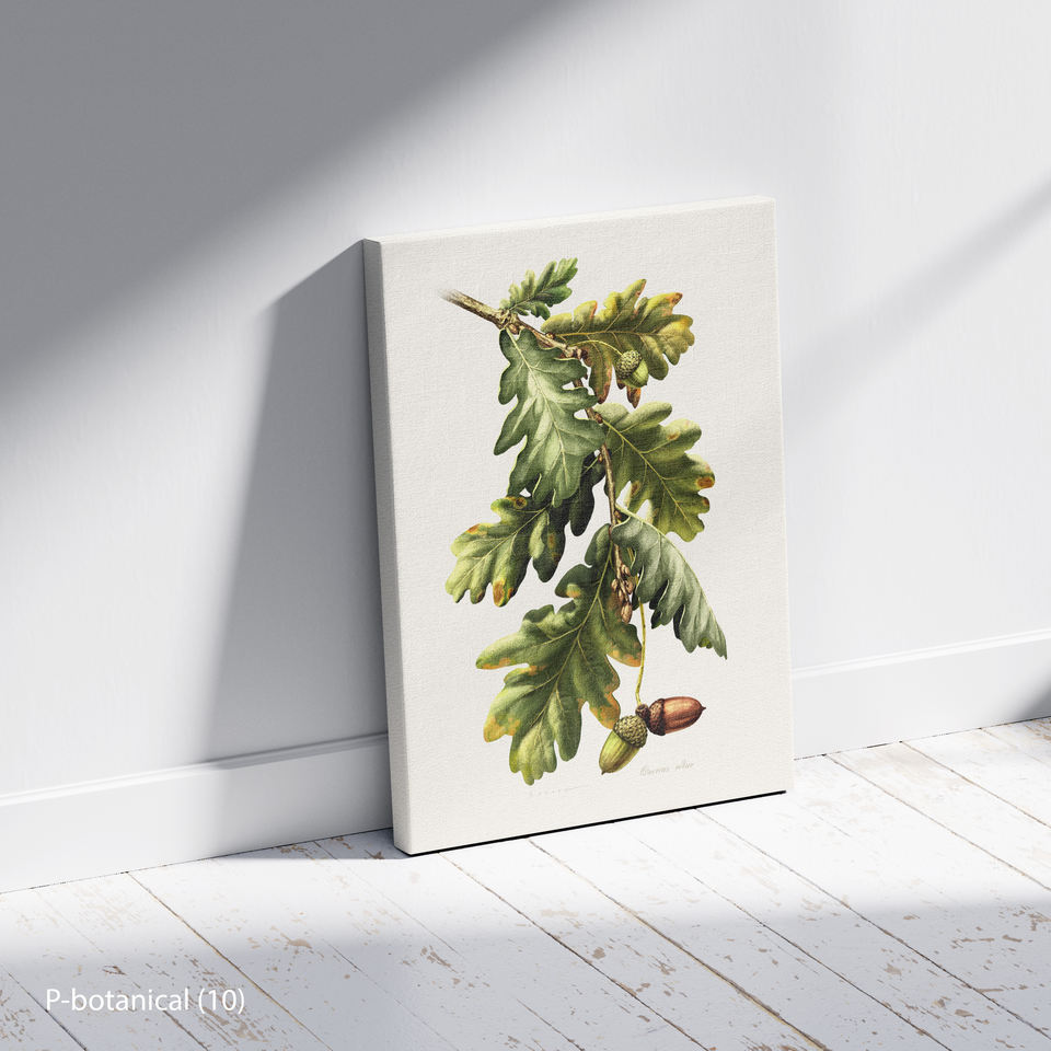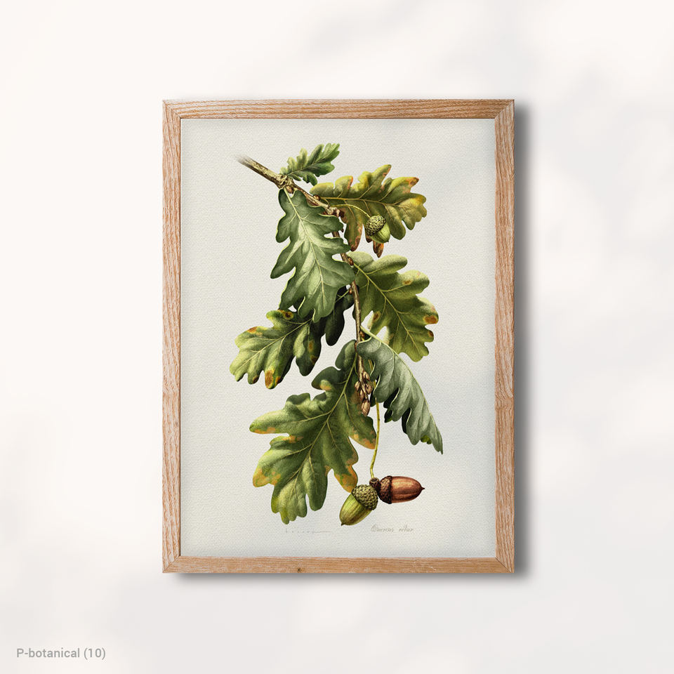 ภาพพิมพ์บนผ้าใบลายกิ่งใบโอ๊ค ศิลปะตกแต่งผนังแนวพฤกษศาสตร์ ภาพประกอบพืชในป่าสมัยใหม่ ของตกแต่งบ้านสไตล์ธรรมชาติ พร้อมกรอบไม้