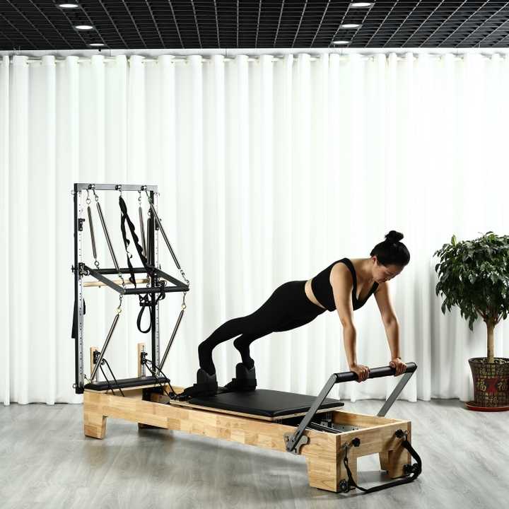เครื่องออกกำลังกายพิลาทิสแบบโอ๊คพิลาทิส รีฟอร์เมอร์ พร้อมฮาล์ฟทาวเวอร์ สำหรับใช้ในสตูดิโอ ยิม ฟิตเนส และฝึกซ้อมที่บ้าน