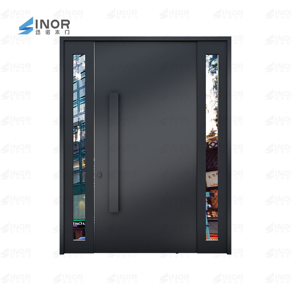 ประตูทางเข้าไม้โอ๊คแบบหมุนที่ทันสมัยสำหรับที่พักอาศัยประตูด้านหน้าทำจากไม้แข็งพื้นผิวทนต่อสภาพอากาศ