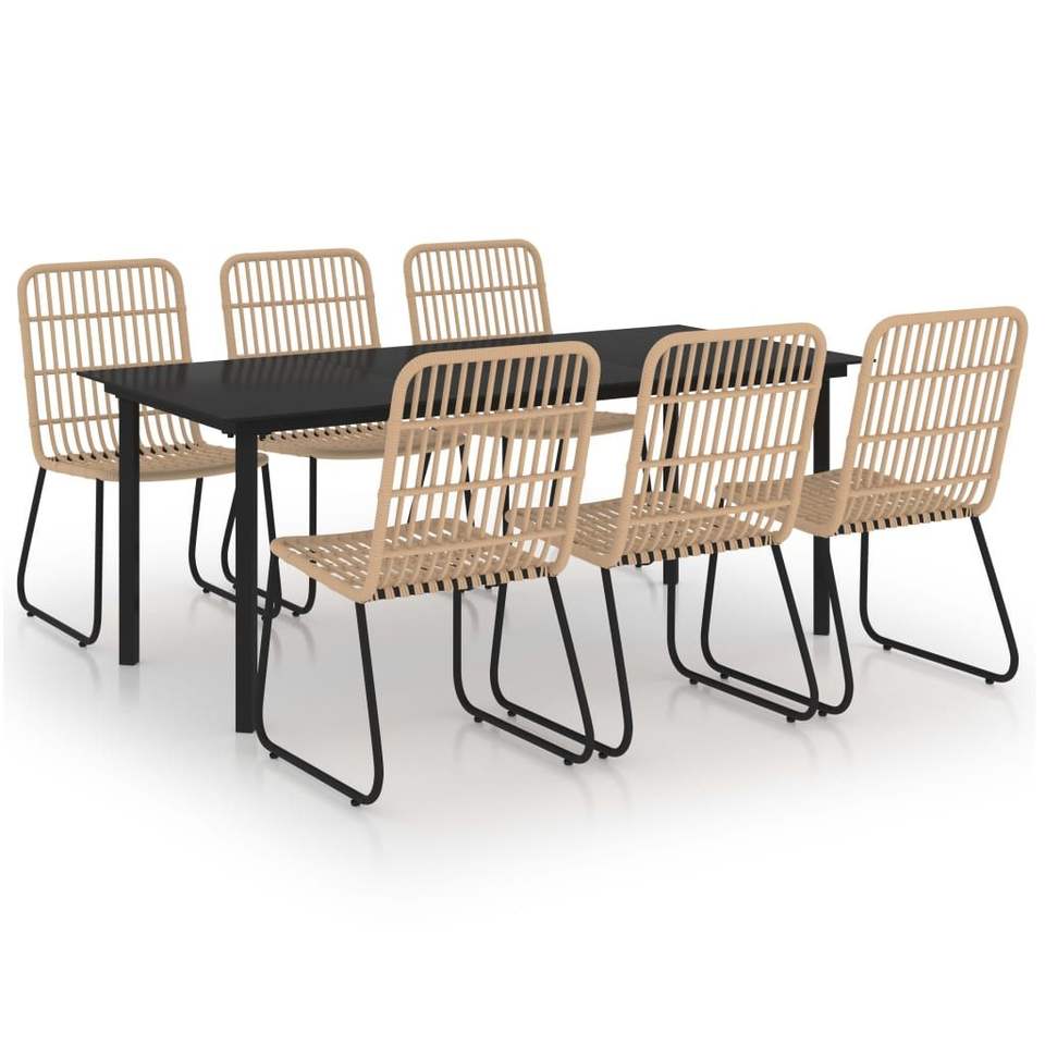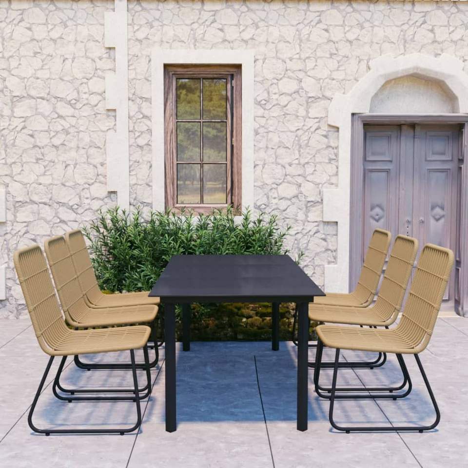 ชุดโต๊ะรับประทานอาหารไม้โอ๊คและหวายโพลีสีดำ ขนาด 74.8 x 35.4 x 29.1 นิ้ว สำหรับใช้ในสวน