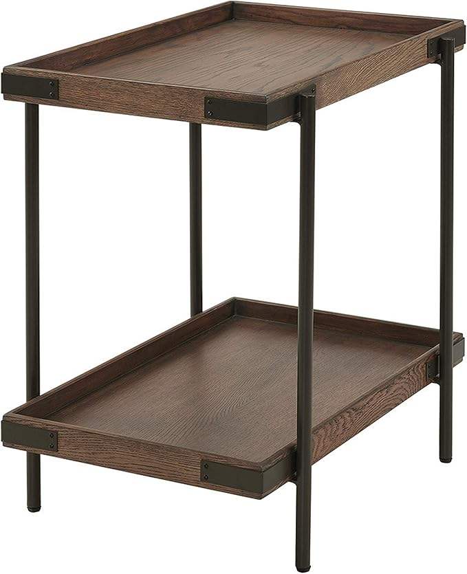 โต๊ะข้างไม้โอ๊คและโลหะพร้อมชั้นวาง