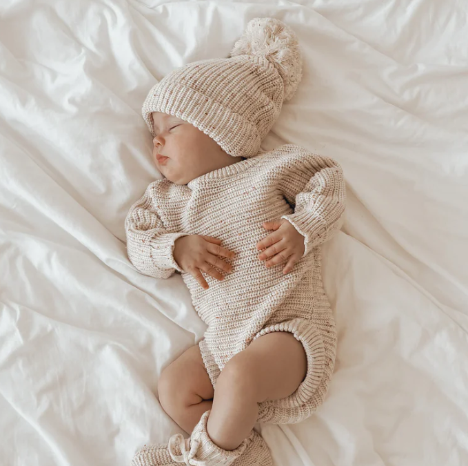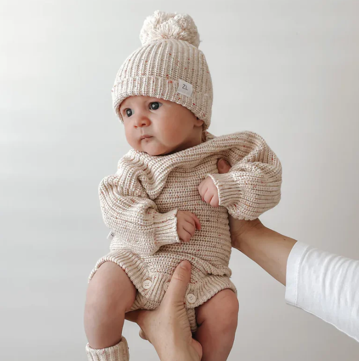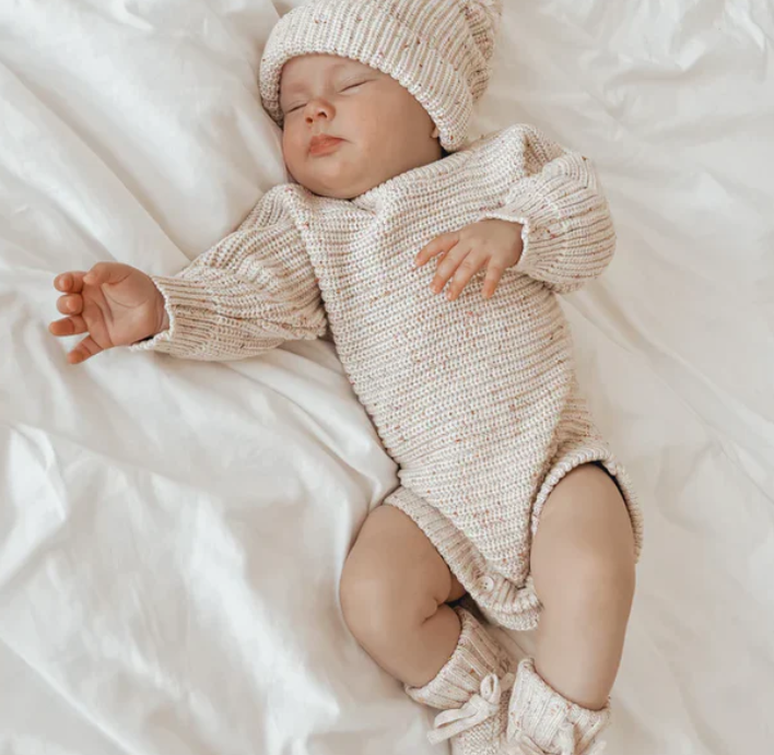 ชุดรอมเปอร์เด็กทารกผ้าฝ้ายถักเนื้อนุ่ม Oatmeal Fleck 100% ปรับแต่งได้ แขนยาว สำหรับเด็กแรกเกิด 0-24 เดือน ใส่ได้ทุกวัน