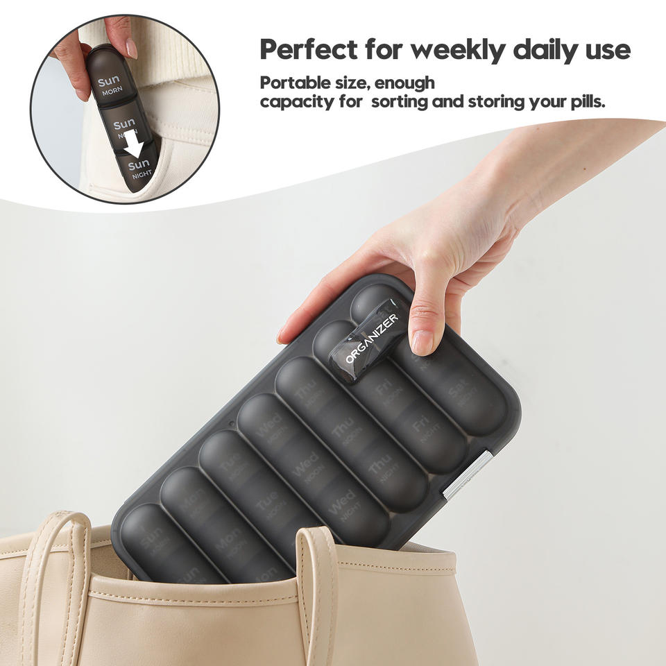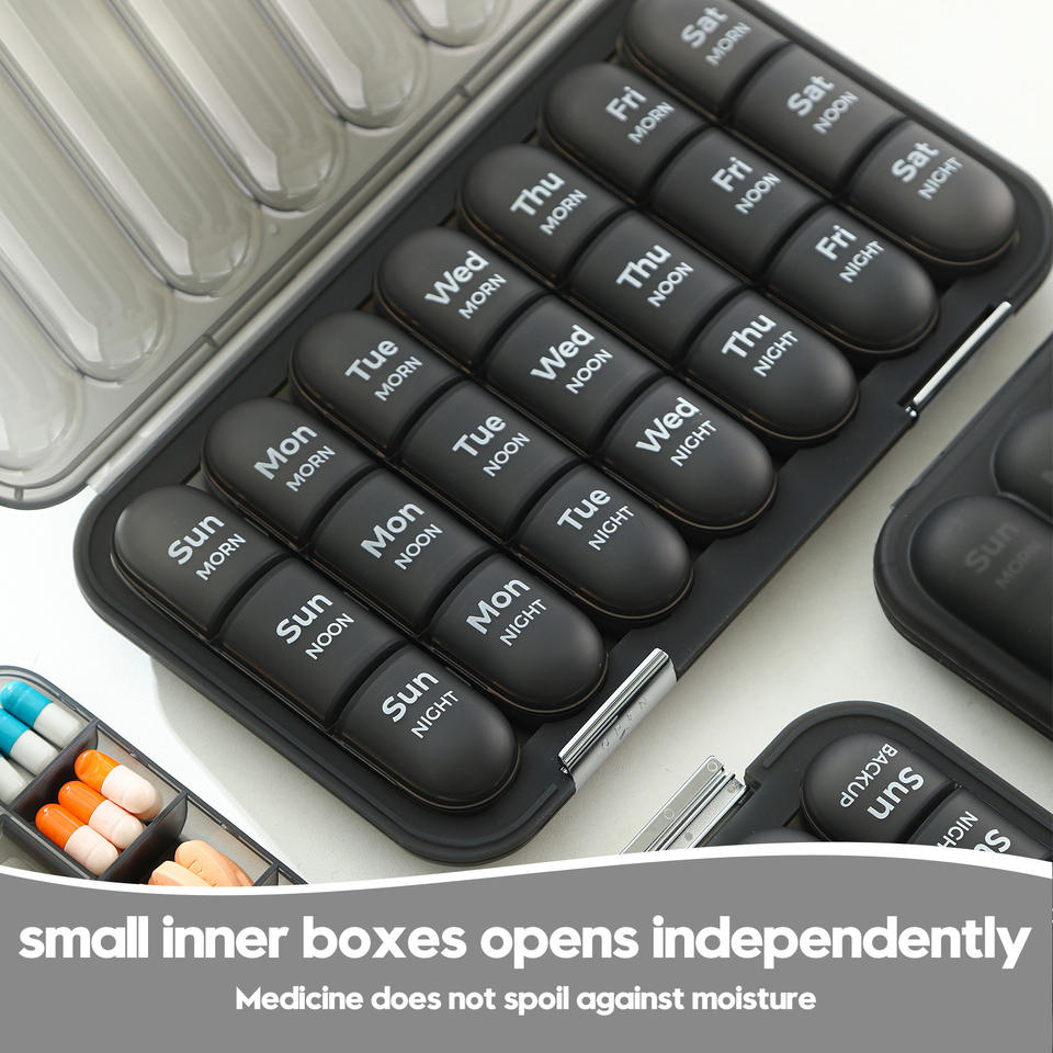 กล่องเก็บยา Obevnisek แบบ 28 ช่อง กล่องจัดยาประจำสัปดาห์พร้อมช่องสำรองสำหรับการจัดการปริมาณยาประจำวัน