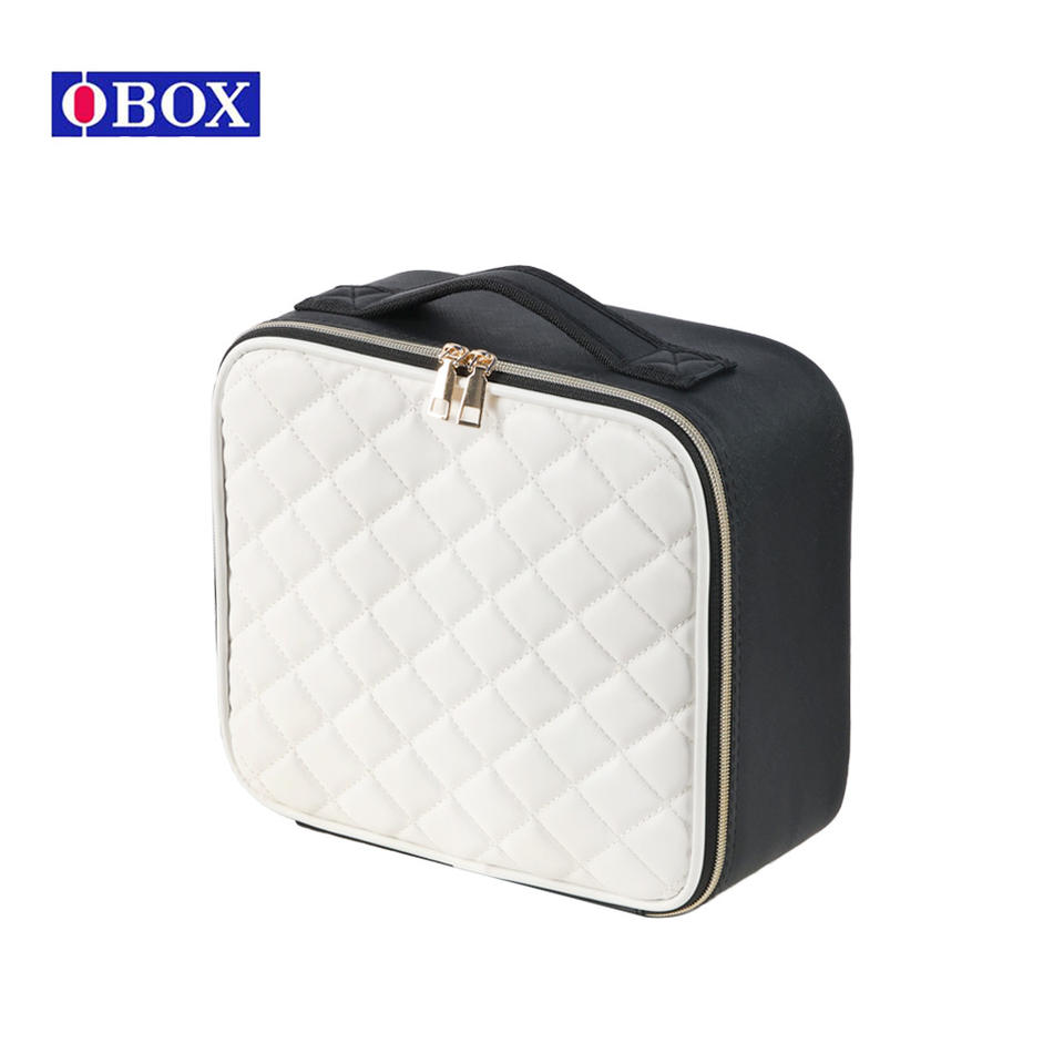 กระเป๋าเครื่องสำอาง Obox สีขาว ดำ ม่วง ดีไซน์ลายควิลท์ หูหิ้วนุ่ม พกพาสะดวก ใช้ได้ทุกวัน