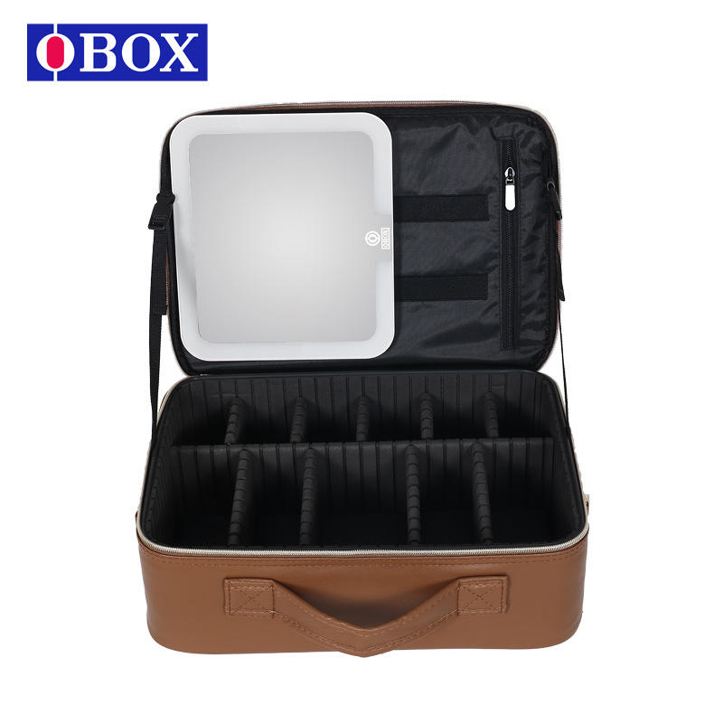กระเป๋าจัดระเบียบเครื่องสำอาง Obox พร้อมกระจก ความจุขนาดใหญ่ กระเป๋าเครื่องสำอางสำหรับเดินทาง ปิดด้วยซิป วัสดุ PVC สีดำ