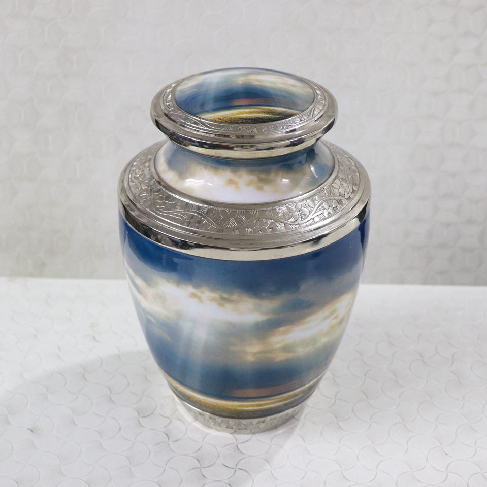 โกศบรรจุอัฐิอะลูมิเนียมแบบสั่งทำพิเศษสำหรับงานศพ รุ่นโอเชียนบีช ทันสมัย ทนทาน สำหรับบรรจุอัฐิมนุษย์และสัตว์เลี้ยง