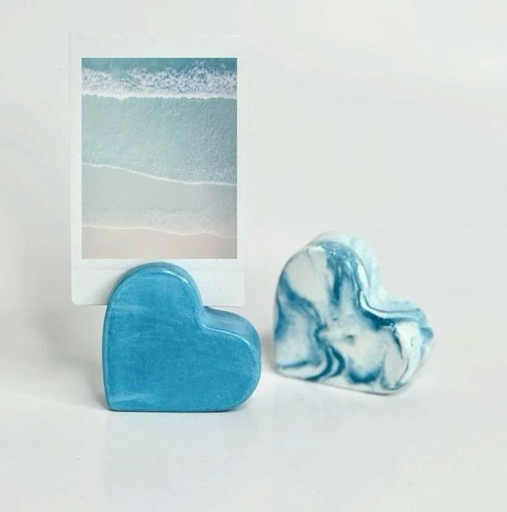 ที่ใส่รูปภาพรูปหัวใจสีฟ้าทะเลทำจากเรซิ่น ที่วางรูปภาพตกแต่งบนโต๊ะ ที่หนีบแสดงข้อความบนโต๊ะสไตล์โมเดิร์น สำหรับบ้านและสำนักงาน