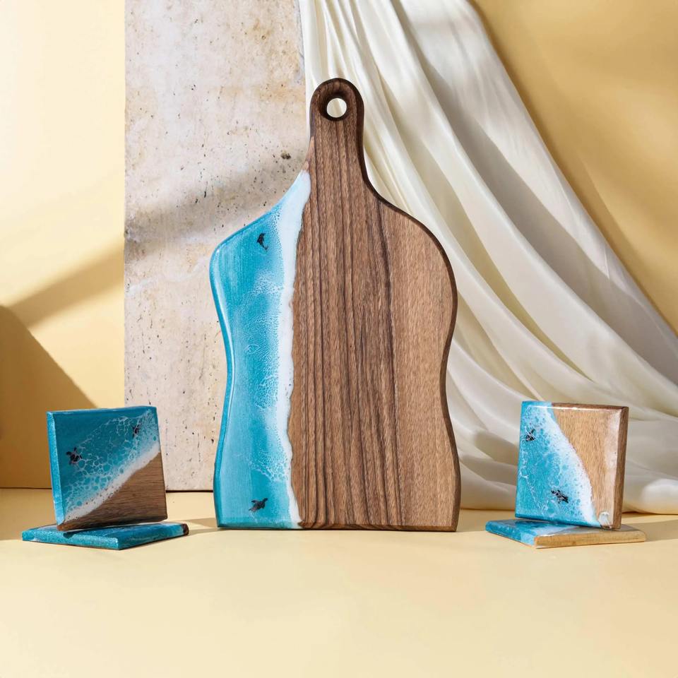 เขียงพลาสติกพับได้สีฟ้า ดีไซน์สวยงาม สำหรับใช้ในครัว ใช้เสิร์ฟอาหาร จัดวางอาหาร ของขวัญจากอินเดีย