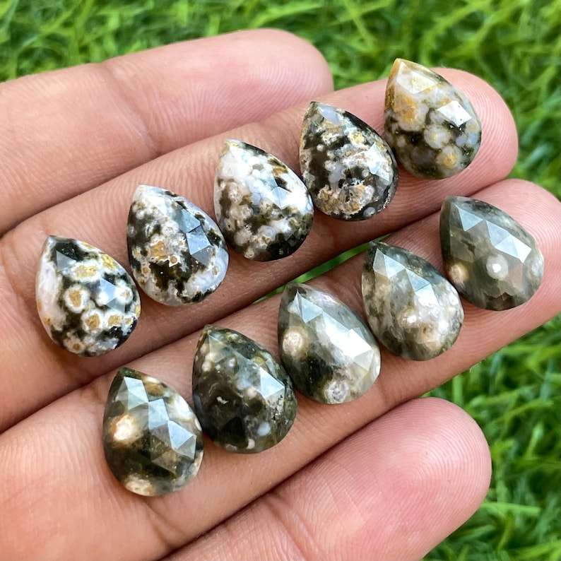 Ocean Obsidian Pear Shape Rosecut Gemstone Cabochon Lot for Jewelry Making