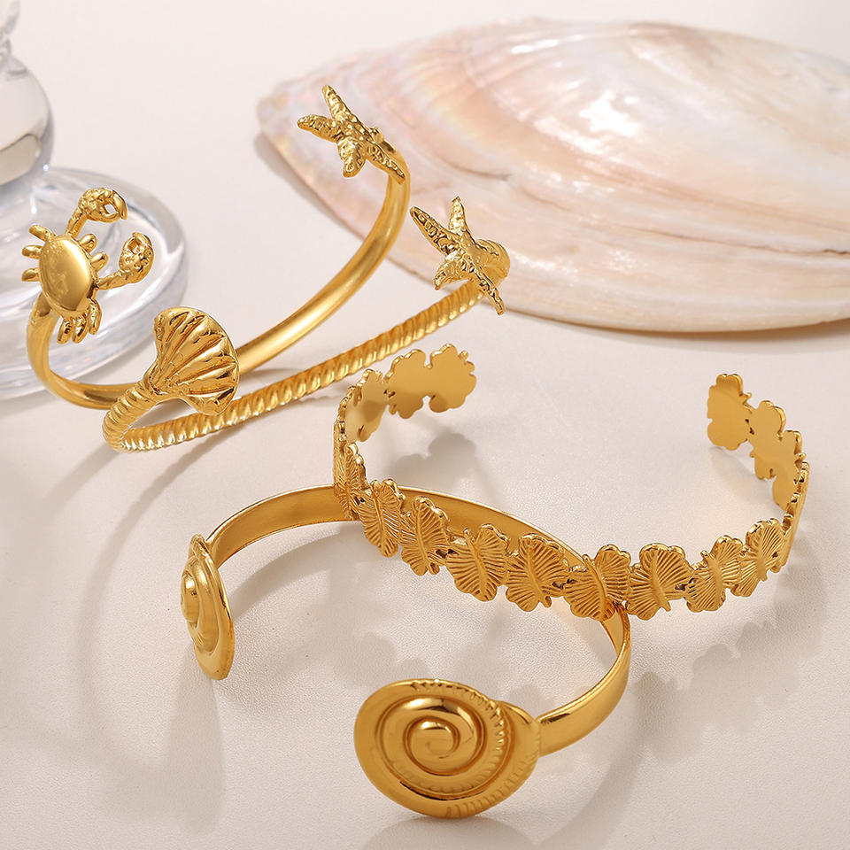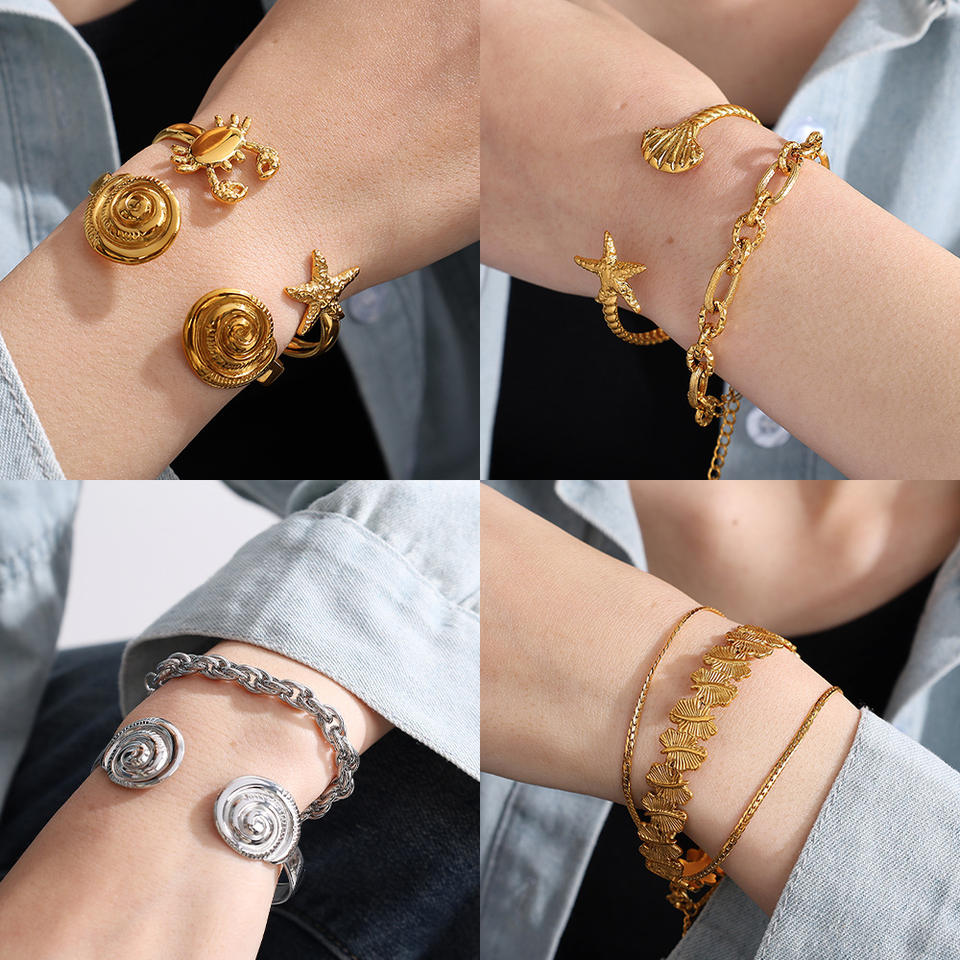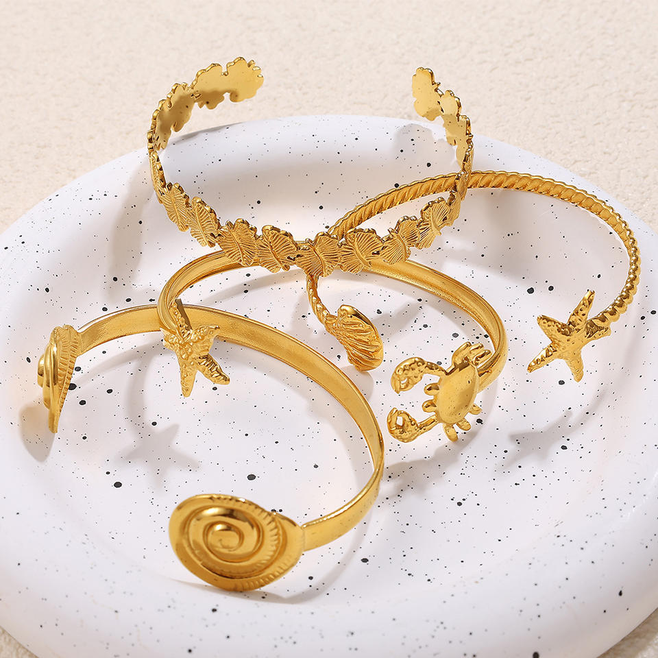 สร้อยข้อมือโอเชียนซีรีส์ ไทเทเนียมสตีล รูปดาวทะเล ดีไซน์ใบไม้แบบเปิด เครื่องประดับสำหรับทุกเพศ