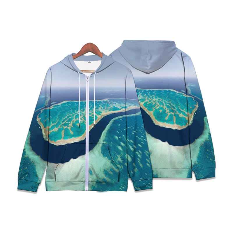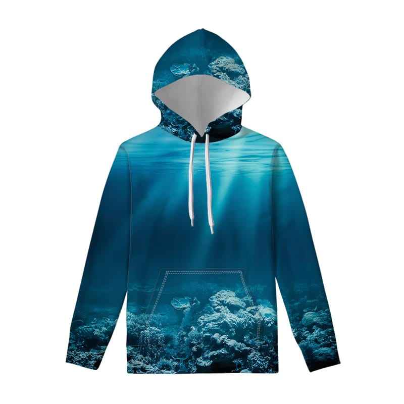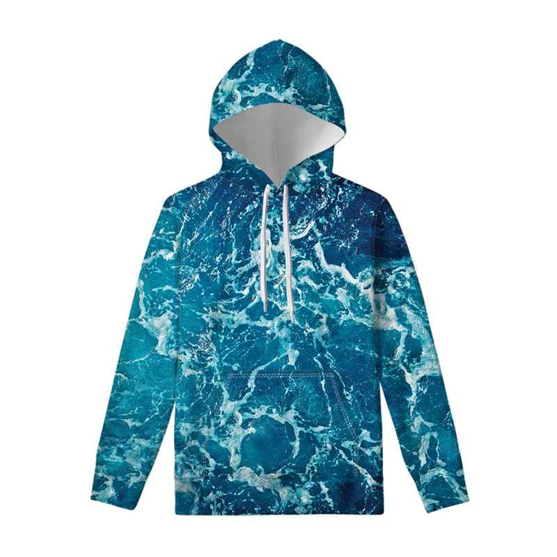 เสื้อมีฮู้ดแขนยาวสำหรับผู้ชายพิมพ์ลายคลื่นมหาสมุทร