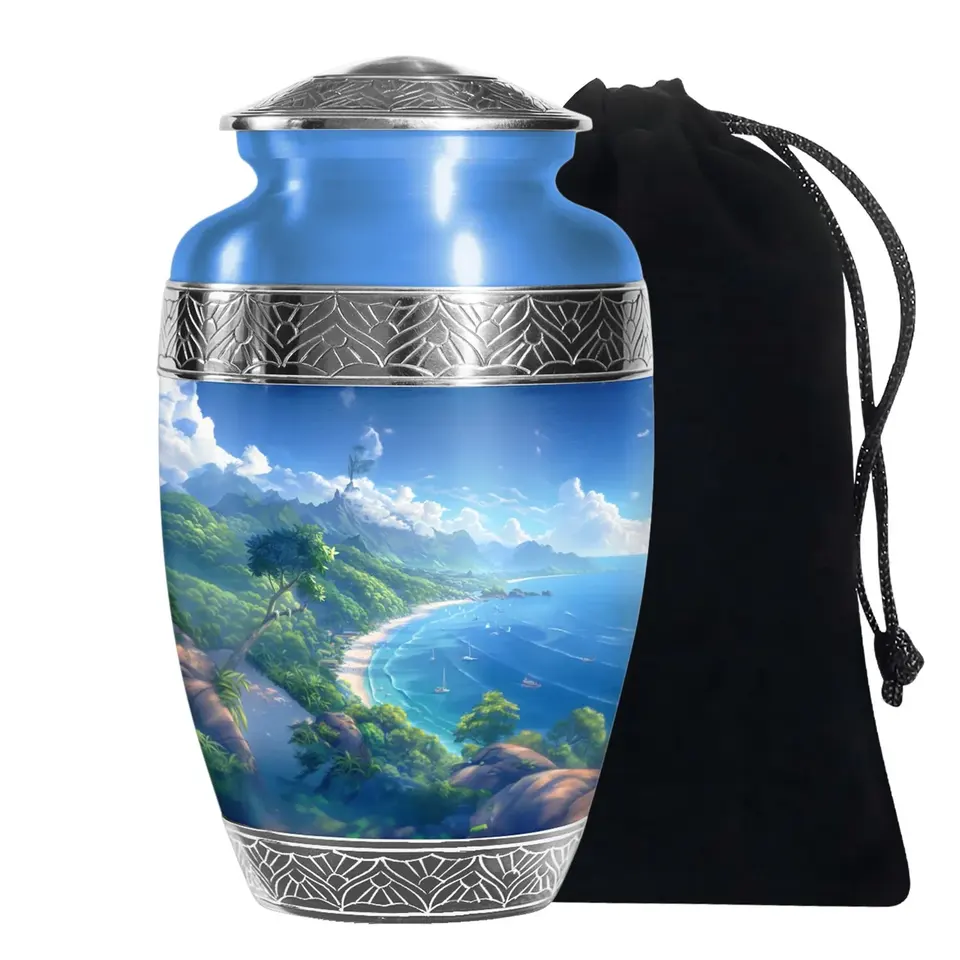 โกศบรรจุอัฐิสำหรับฌาปนกิจ ลายคลื่นทะเล สีฟ้า สำหรับวางไว้ที่ชายหาด