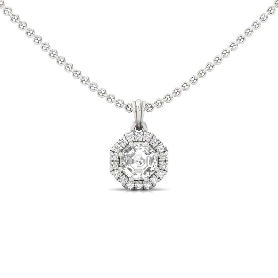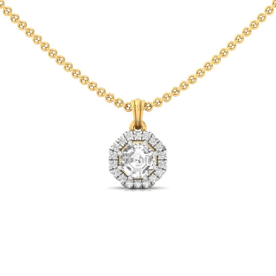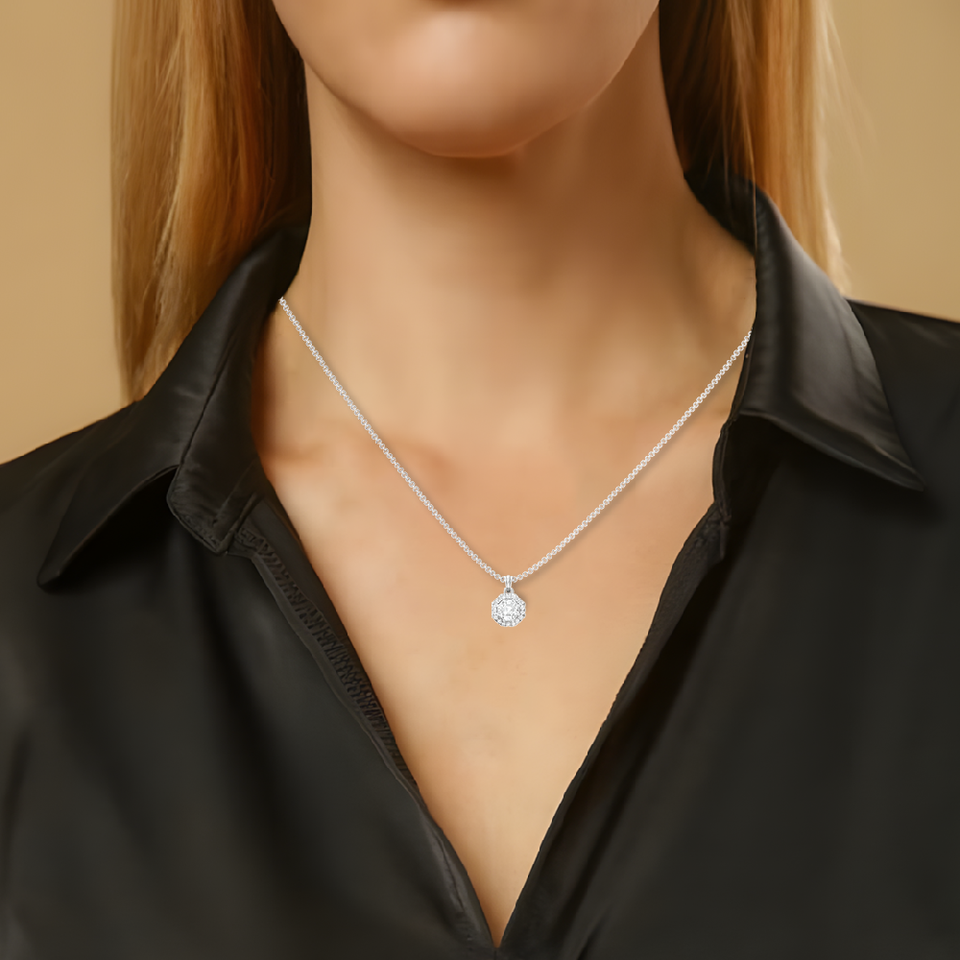 จี้เพชรทรงแปดเหลี่ยม CVD รุ่น Regal Grace Solitaire ชุบทอง 10K รับรองโดย GIA เครื่องประดับสไตล์ชาติพันธุ์สุดหรู เป็นของขวัญสำหรับผู้หญิง
