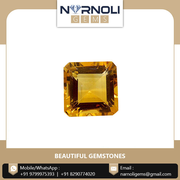 พลอยซิทรินกึ่งหลวมกึ่งมีค่าตัดตามธรรมชาติขนาดแปดเหลี่ยม
