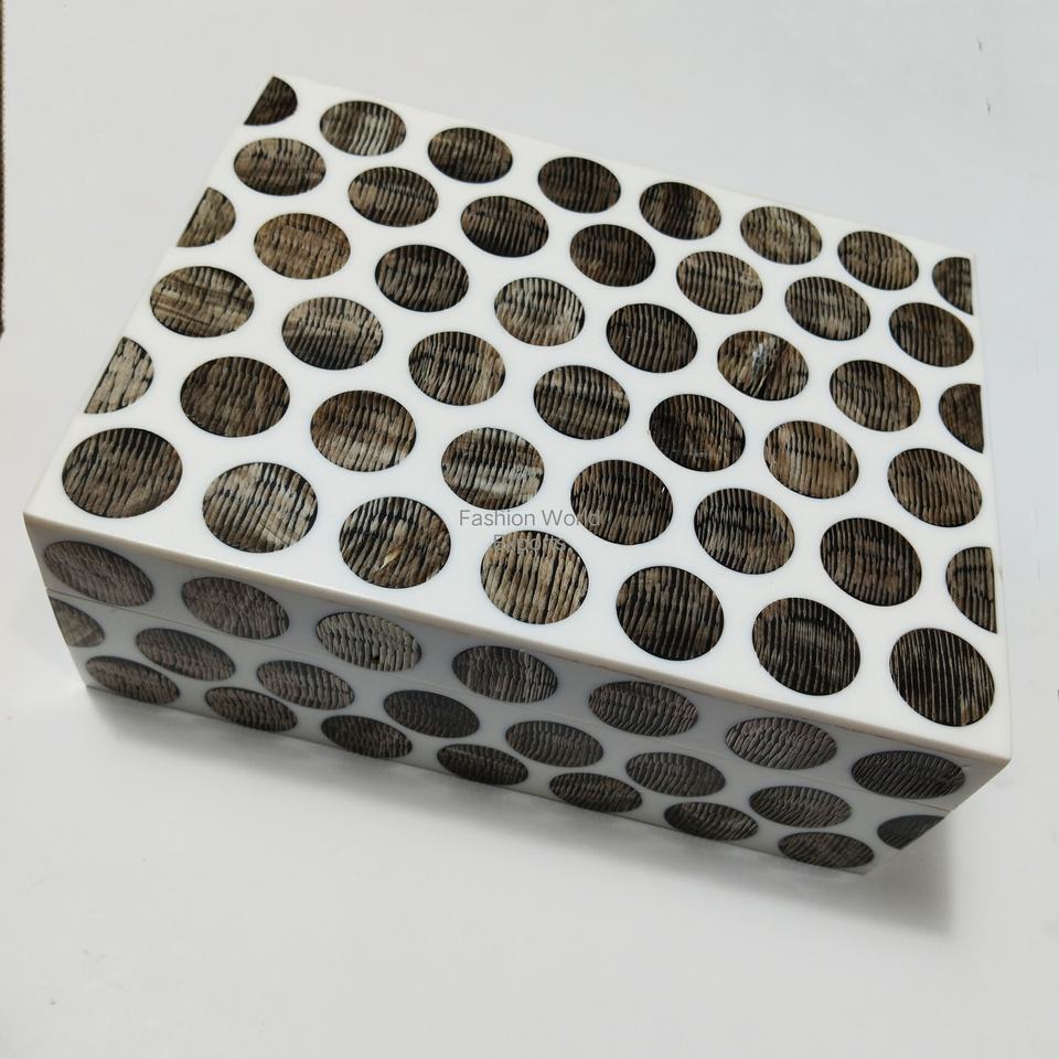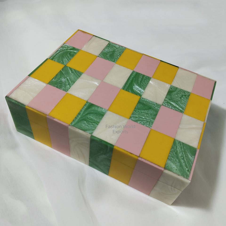 กล่องเรซิ่นสีเขียวแปดเหลี่ยมฝังด้วยขอบสีดำกล่องเครื่องประดับตกแต่งโต๊ะทำด้วยมือกับผู้ผลิตอินเดีย