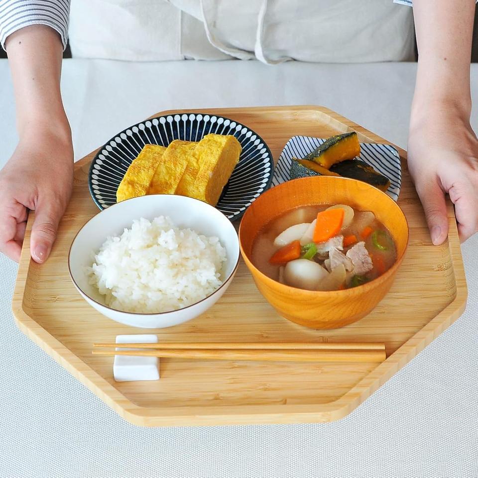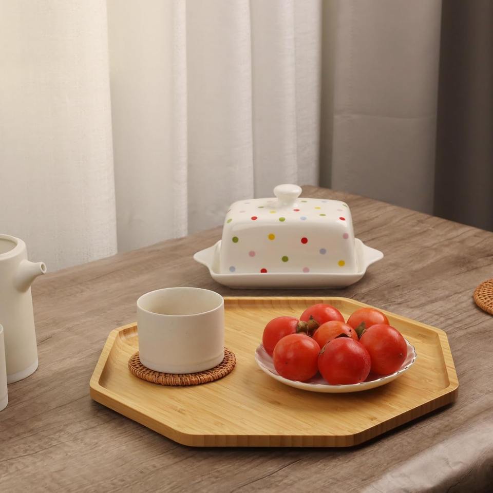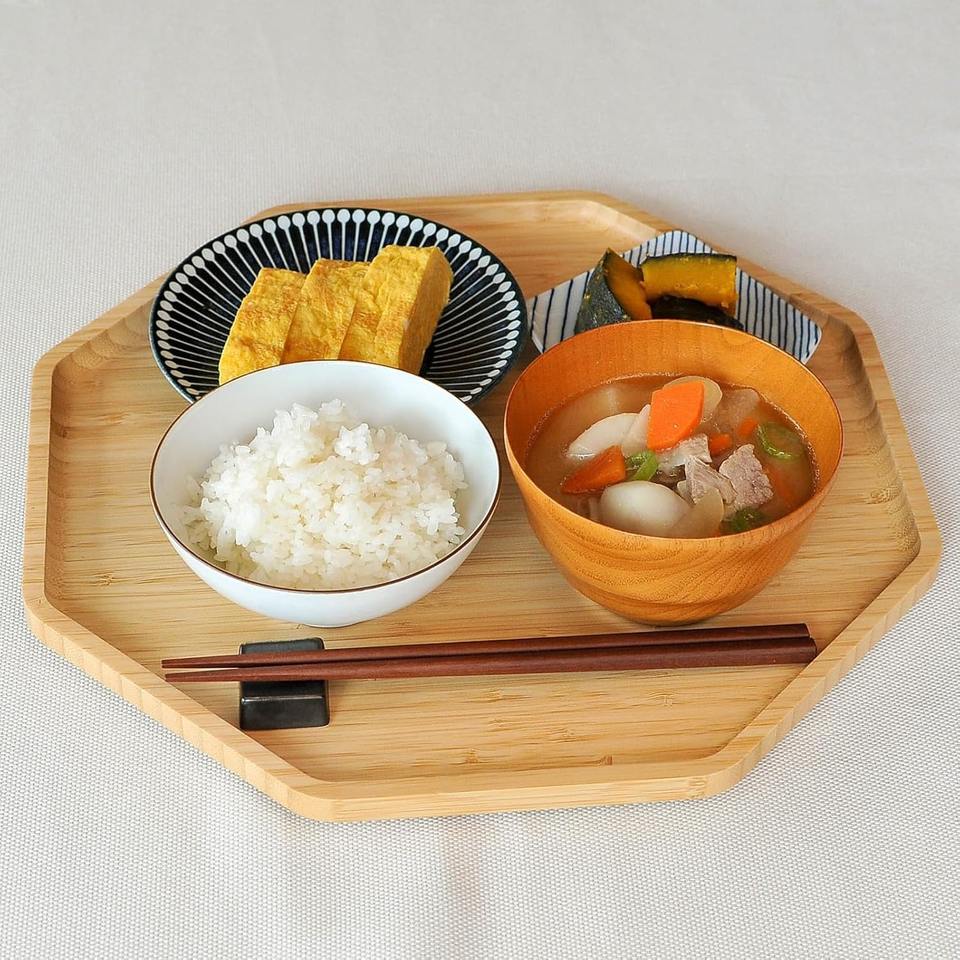 จานไม้ไผ่ทรงแปดเหลี่ยมสำหรับอาหารค่ำจานเสิร์ฟอาหารทำจากไม้ธรรมชาติสุดหรู