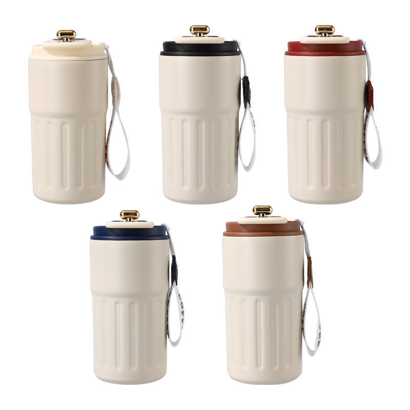 แก้วกาแฟทรงแปดเหลี่ยม 450 มล. พร้อมหน้าจอแสดงอุณหภูมิอัจฉริยะและสายคล้องสำหรับใช้ในชีวิตประจำวัน